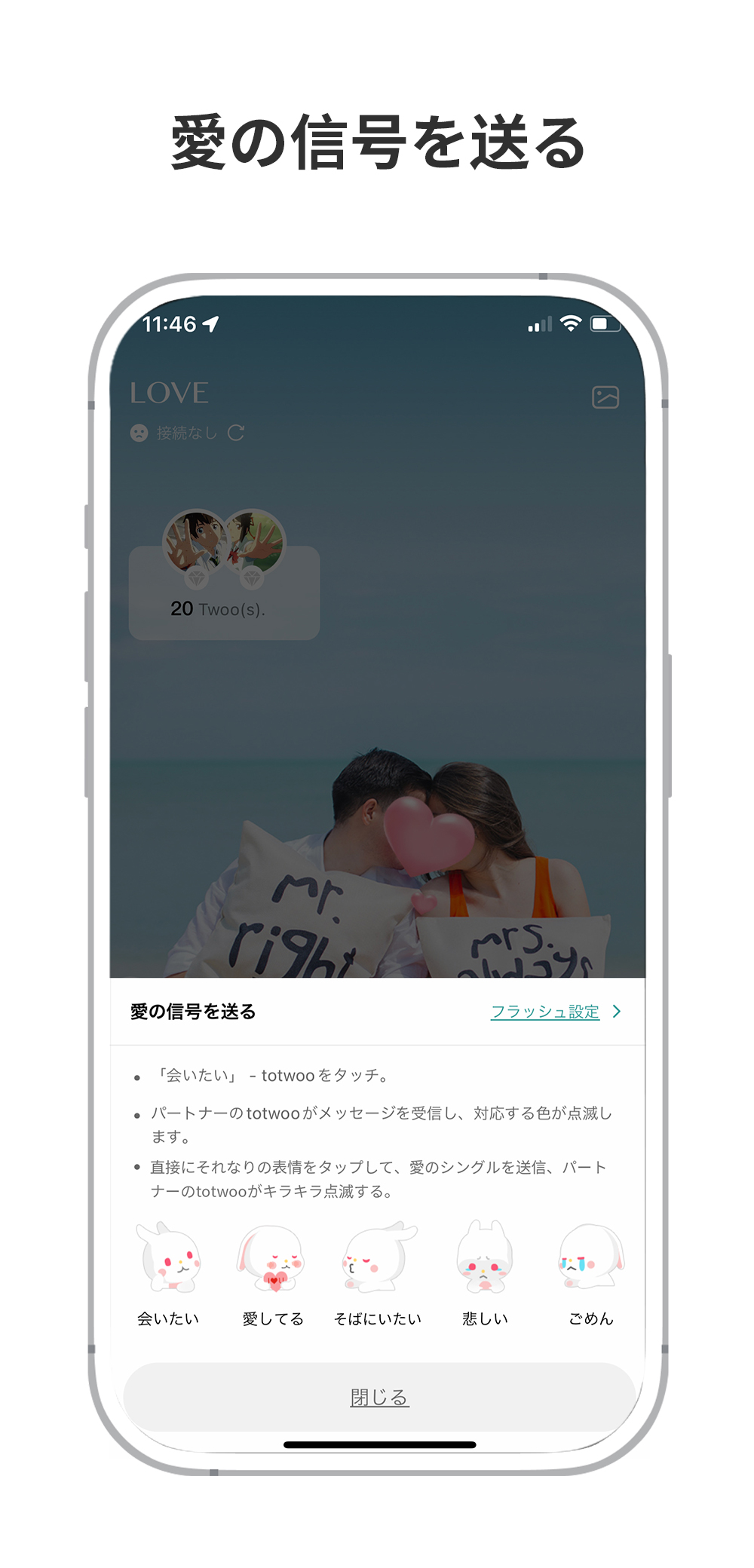 ①totwooアプリのダッシュボード「LOVE」を選択してください