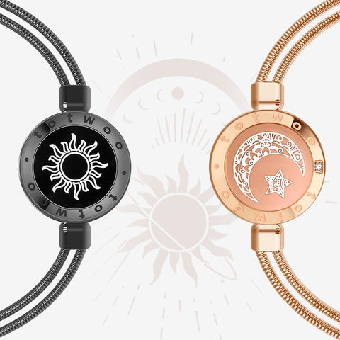 一人が自分のブレスレットに触れると、センサーが信号を送り、相手のブレスレットが振動または光を放ちます。